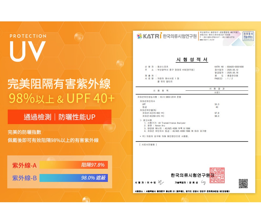完美防曬,通過測試可以阻隔98%紫外線