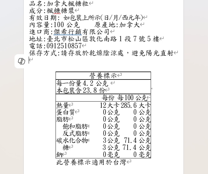 我們所有楓糖產品皆為 100% 加拿大原裝進口純楓糖,無人工香料、無添加、無混糖。