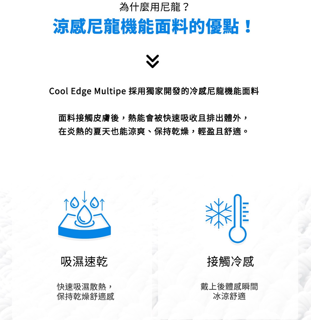 涼感尼龍材質,彈性高且柔軟親膚
