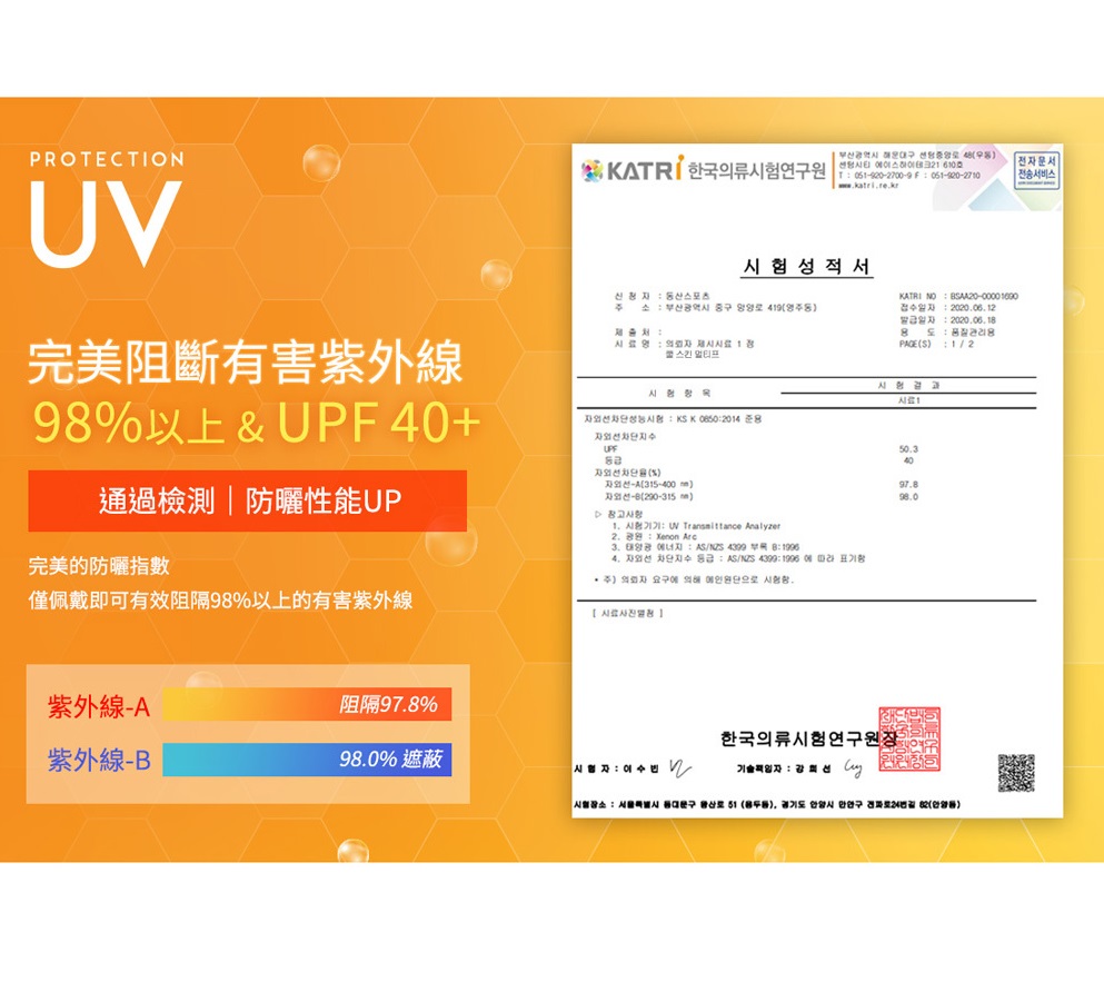 完美防曬,通過測試可以阻隔98%紫外線